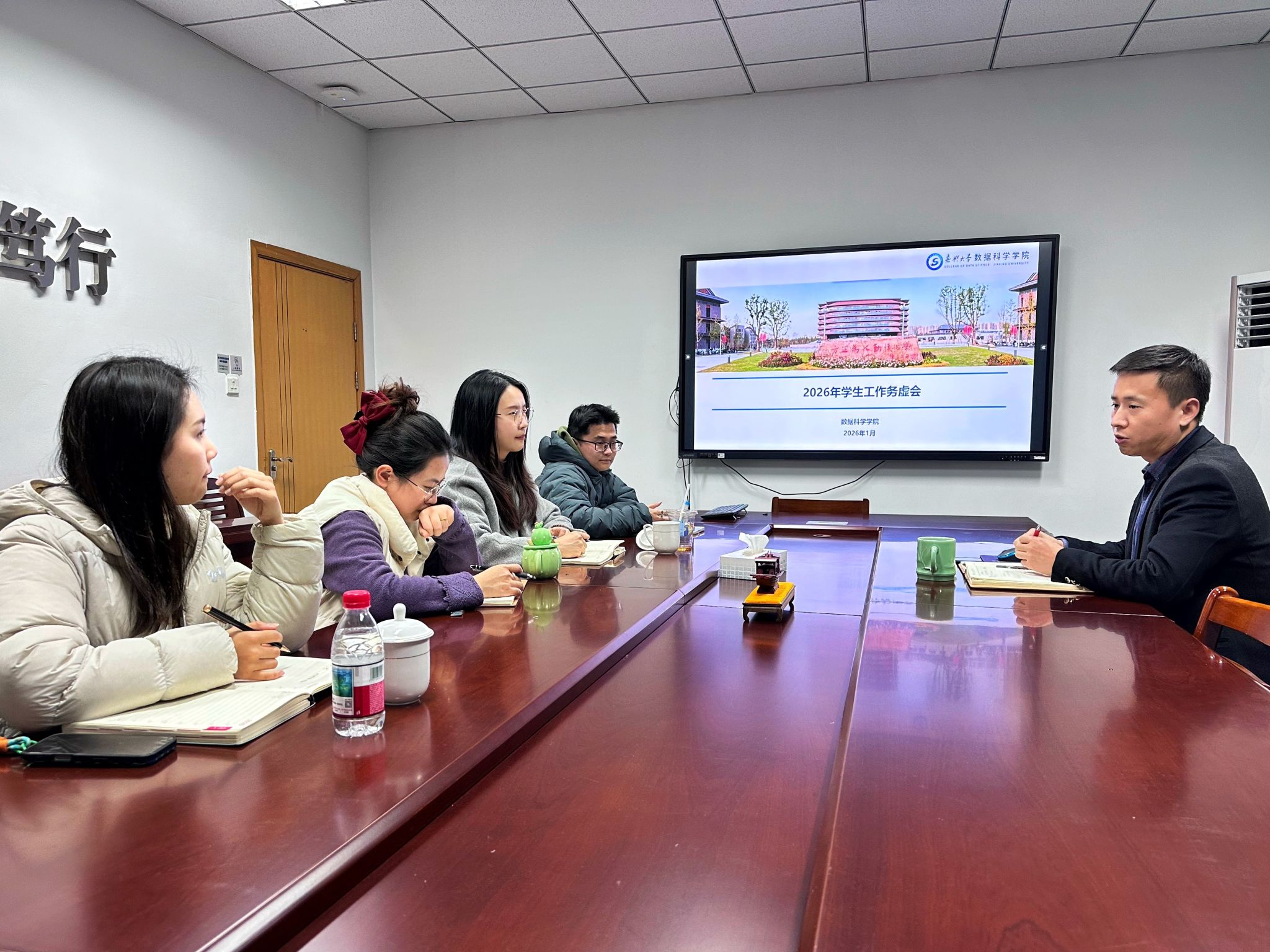 近日,数据科学学院在博学楼325会议室召开2026年学生工作务虚会,党委副书记李华杰及全体辅导员齐聚一堂,总结2025年工作成效,共绘2026年育人蓝图。