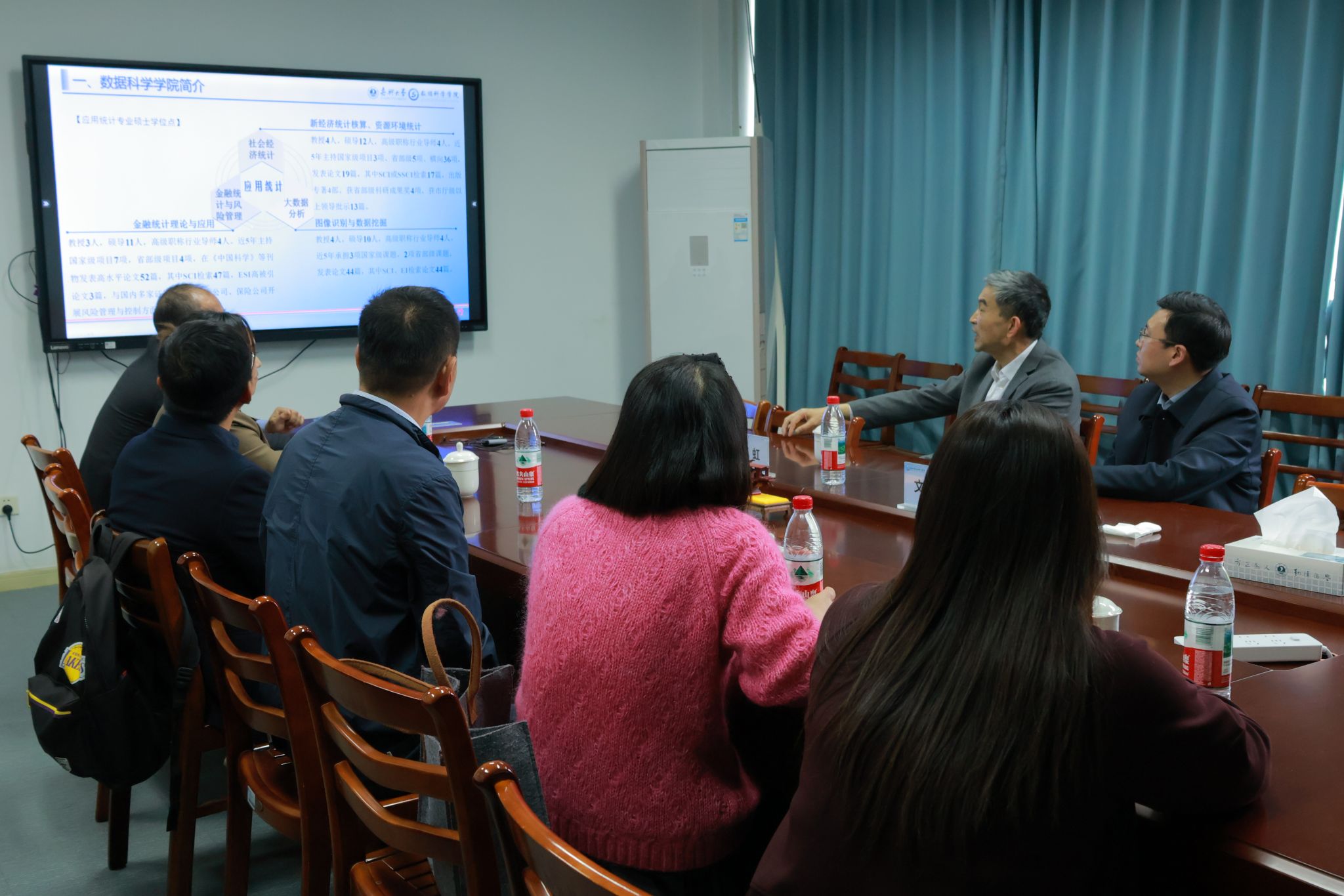 讲座结束后,在副校长文雁兵的陪同下,周亚虹教授实地调研了数据科学学院,在听取学院负责人的工作汇报后,周教授对学院的学科发展和人才引进等给予了建设性指导。