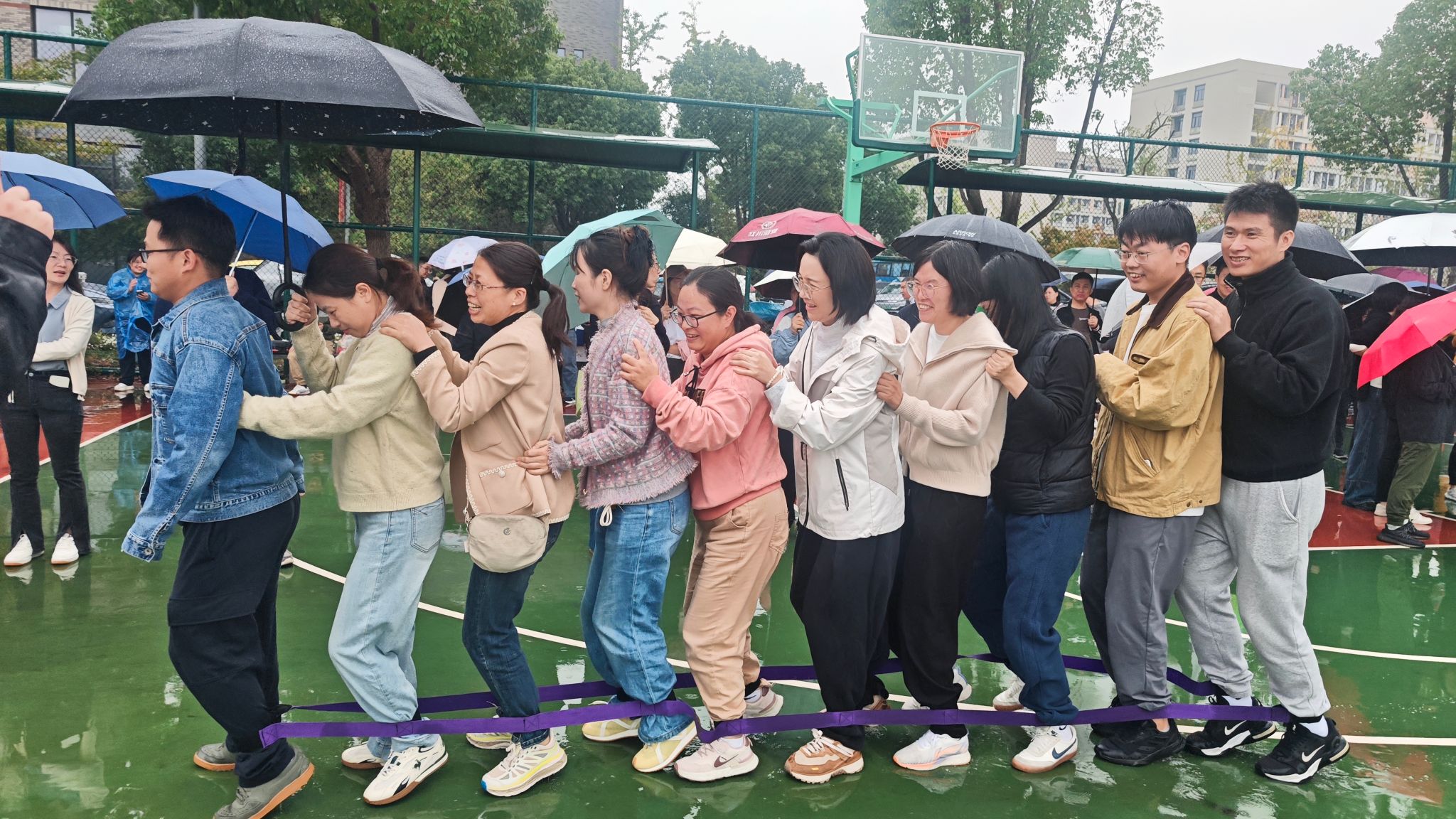 赛场上,学院的老师们化身活力四射的运动健将,在毛毛虫接力、巨人脚步、八仙过海、爱的魔力转圈、8×60 米迎面接力赛等项目中展现风采。