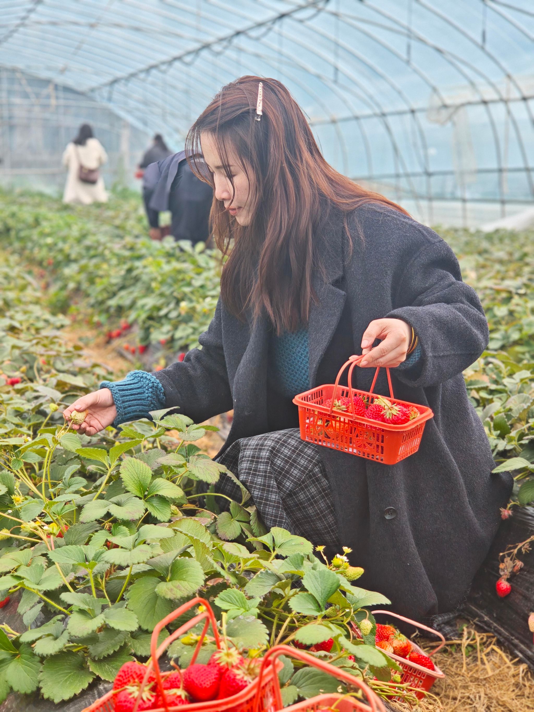 随后,老师们步入草莓园,体验采摘的乐趣。翠绿的藤叶间,一颗颗鲜红饱满的草莓挂满田垄,大家手提小篮,一边采摘一边品尝,感受着泥土的芬芳与收获的喜悦,田园风光中洋溢着轻松愉快的氛围。