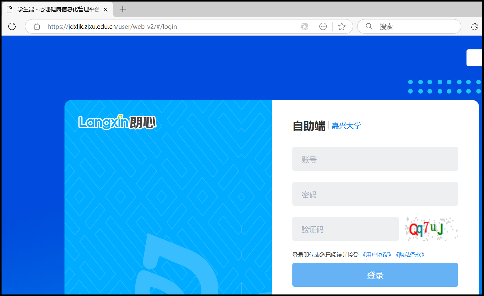 校外网(校外考生用):https://jdxljk.zjxu.edu.cn/user/web-v2/#/login